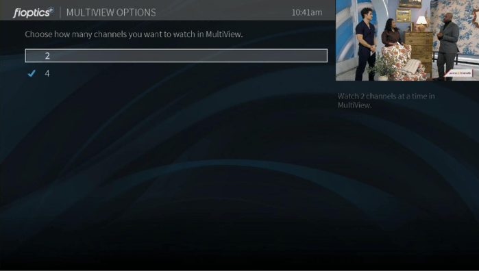 With MultiView you can view up to 4 live channels side by side on your Fioptics+ set top box so you never miss a moment!