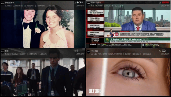 Initial launch will open Multiview with the last 4 channels visited. Once changed, Multiview will launch on the last channels selected in Multiview.